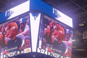 比賽期間,大屏幕曬出馬刺名宿“海軍上將”大衛(wèi)·羅賓遜來到現(xiàn)場看球的畫面,觀眾們報(bào)以熱烈歡呼聲。