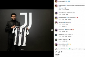 維加曬出自己手持尤文球衣的照片,并配文:“很高興成為這家偉大俱樂部的一員”。