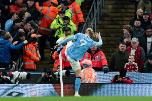 體育資訊11月10日訊 英超第11輪比賽,曼城在伊蒂哈德球場迎戰(zhàn)利物浦。本場比賽,主隊前鋒哈蘭德盡管在上半場錯失1粒點球,但他之后頭槌破門為球隊首開紀(jì)錄。