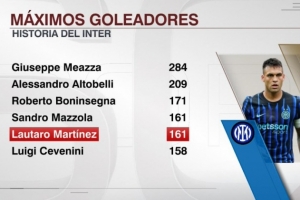 體育資訊11月10日訊 國米在本輪意甲焦點戰(zhàn)2-0力克拉齊奧,勞塔羅建功。數(shù)據(jù)統(tǒng)計顯示他也追平馬佐拉并列國米隊史射手榜第4位。