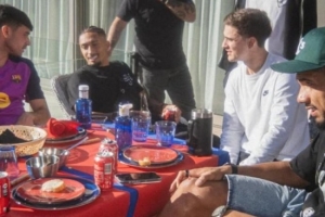 阿勞霍積極倡導(dǎo)這類團(tuán)隊(duì)活動(dòng),拉菲尼亞也在Instagram中分享了多張聚餐照片。我們可以看到阿勞霍與隊(duì)友們以及包括理療師在內(nèi)的俱樂部員工圍坐在餐桌旁,桌上鋪著藍(lán)紅相間的桌布,彰顯了對俱樂部的熱愛。