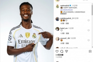 皇馬官方社媒曬出卡馬文加的照片,配文:“生日快樂(lè),卡馬文加!”