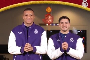 視頻中,包括姆巴佩、布拉欣-迪亞斯在內(nèi),皇馬俱樂部6人用中文表示:新春快樂。