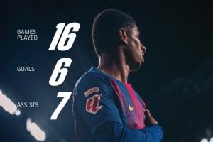 巴塞羅那官方也曬出拉什福德的數(shù)據(jù),并且配文:16場6球7助,拉什福德勢(shì)不可擋??