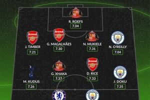 中場:庫杜斯(熱刺)、扎卡(桑德蘭)、賴斯(阿森納)、多庫(曼城)