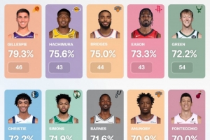 注:至少出手40次接球投籃;有效命中率=(命中數(shù)+0.5×三分命中數(shù))/出手數(shù)