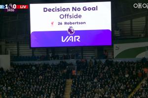 曼城3-0利物浦比賽的第38分鐘,范戴克頭球破門,但VAR判定羅伯遜越位位置干擾,進球被判無效。