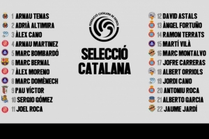 1-特納斯(比利亞雷亞爾)、2-阿爾蒂米拉(比利亞雷亞爾)、3-亞歷克斯·卡諾(CE歐羅巴)、4-阿爾瑙·馬丁內(nèi)斯(赫羅納)、5-邦巴(安道爾FC)、6-伯納爾(巴薩)、7-亞歷克斯·莫雷諾(赫羅納)、8-馬克·多梅內(nèi)克(安道爾FC)、9-?!ぞS克托(布拉加)、10-塞爾吉奧·戈麥斯(皇家社會(huì))、11-喬爾·羅卡(赫羅納)、12-阿斯塔爾斯(薩瓦德爾體育)、13-福圖尼奧(西班牙人)、14-特拉茨(西班牙人)、15-馬蒂·維拉(安道爾FC)、16-蒙塔爾沃(塔拉戈納體操)、17-喬弗雷·卡雷拉斯(西班牙人)、18-奧里爾斯(薩瓦德爾體育)、19-喬迪·卡諾(CE歐羅巴)、20-安東尼奧·羅卡(西班牙人)、21-阿爾伯托·加西亞(圣安德魯聯(lián)盟)、22-雅爾迪(塔拉戈納體操)