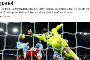 體育資訊11月14日訊 英媒《泰晤士報(bào)》報(bào)道,英超專家組已經(jīng)裁定,上輪英超范戴克對(duì)曼城的進(jìn)球應(yīng)被判有效。
