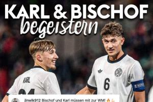 此役,來自拜仁的雙子星卡爾和比朔夫貢獻(xiàn)了極佳的表現(xiàn):17歲的卡爾首次入選德國(guó)U21,本場(chǎng)比賽貢獻(xiàn)2球。20歲的比朔夫更是擔(dān)任德國(guó)隊(duì)的場(chǎng)上隊(duì)長(zhǎng),貢獻(xiàn)3球1助。在數(shù)據(jù)機(jī)構(gòu)Sofascore的賽后評(píng)分中,二人均得到了10分滿分。
