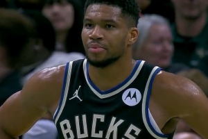 GIF-字母哥反擊撞翻普拉姆利,歐洲步劈扣2+1,黃蜂挑戰(zhàn)成功變進攻犯規(guī)