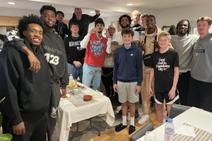 球隊(duì)到達(dá)密爾沃基后,在當(dāng)?shù)貢r(shí)間昨天晚上,克尼佩爾的母親Chari Knueppel邀請(qǐng)了球隊(duì)球員一同到家共進(jìn)晚餐??四崤鍫柕哪赣H發(fā)文寫道:“太激動(dòng)了,能在我們密爾沃基的家里招待黃蜂隊(duì)球員們!”
