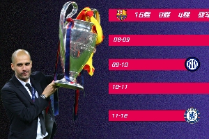 瓜帥生涯帶隊還從未缺席過歐冠淘汰賽,最差的成績是2016-17賽季,帶領(lǐng)曼城止步16強(qiáng)。