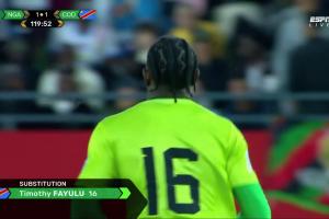 此役兩隊在常規(guī)時間120分鐘內(nèi)打成1-1平,民主剛果專門換門將迎接點球大戰(zhàn),法尤魯替補登場。