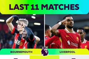 伯恩茅斯近11場英超比賽數(shù)據(jù):