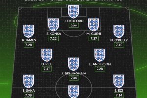 ■以下是英格蘭世預(yù)賽最高評分陣容