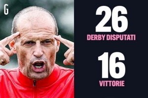 據米蘭體育報數據統(tǒng)計,米蘭主帥阿萊格里此前共26次帶隊出戰(zhàn)米蘭德比(米蘭)以及都靈德比(尤文),戰(zhàn)績?yōu)?6勝5平5負。