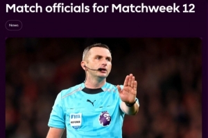 體育資訊11月18日訊 英超官方公布聯(lián)賽第12輪各場(chǎng)執(zhí)法裁判,邁克爾·奧利弗將執(zhí)法阿森納vs熱刺。
