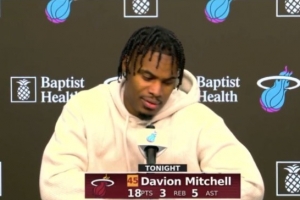 體育資訊11月18日訊 NBA常規(guī)賽,熱火115-113險(xiǎn)勝尼克斯。賽后,戴維恩·米切爾接受了采訪。