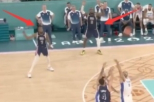 談到巴黎奧運會決賽“金色匕首”驚世一投,庫里笑道:“我到現(xiàn)在想到那張照片就想笑,你(指詹姆斯)和KD在那兒高舉著雙手(要球)?!?/p>