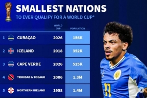 體育資訊11月20日訊 世預賽當前僅剩多個附加賽名額待定,庫拉索以15.6萬人成為二戰(zhàn)之后晉級世界杯的人口最少國家,《轉會市場》也統(tǒng)計了二戰(zhàn)之后晉級世界杯人口最少的國家前十。