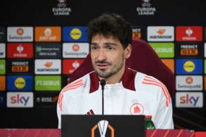 體育資訊1月29日訊 在羅馬對陣法蘭克福的歐聯(lián)杯比賽前,羅馬后衛(wèi)胡梅爾斯出席了賽前新聞發(fā)布會。