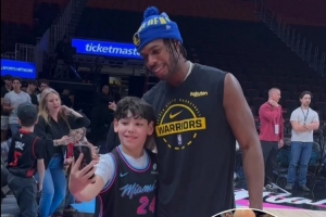 在今天比賽熱身間隙,希爾德看到場邊一位熱火小球迷舉著一個牌子,上面寫著:“生日愿望是可以和希爾德自拍。”希爾德看到后也很開心的完成了小球迷的生日愿望。