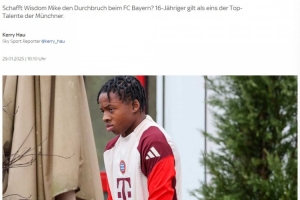 體育資訊1月30日訊 德國天空體育消息,拜仁正和16歲天才邊鋒威斯多姆-麥克商談續(xù)約。