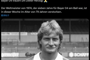 在官方公告中,勒沃庫森聲明:“俱樂部對迪特·赫爾佐格的逝世表示哀悼! ??他曾效力于勒沃庫森7年,這位1974年世界杯冠軍隊(duì)成員于本周去世,享年79歲?!?/p>