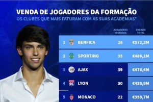 體育資訊11月21日訊 德國轉(zhuǎn)會市場統(tǒng)計了本世紀各俱樂部出售青訓(xùn)球員的收入,并列出榜單,本菲卡、葡萄牙體育、阿賈克斯前三。