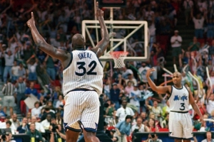 1993年11月21日,魔術客場挑戰(zhàn)新澤西籃網(wǎng)。是役,魔術核心“便士”哈達威手感冰涼,18中6僅得15分,二年級奧尼爾挺身而出,他出戰(zhàn)36分鐘,19投12中,狂砍24分28籃板(10個前場板)15蓋帽3助攻1搶斷的超級三雙!
