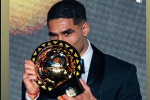 巴黎邊衛(wèi)阿什拉夫當(dāng)選2025年非洲足球先生,拉莫斯社媒曬出阿什拉夫領(lǐng)獎(jiǎng)的照片,配文:“祝賀你,我的兄弟,你是最棒的(Number 1)!”