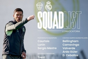 體育資訊11月22日訊 本輪西甲皇馬將迎戰(zhàn)埃爾切,球隊(duì)官方也公布了本場(chǎng)比賽大名單,米利唐、阿拉巴缺戰(zhàn),具體如下: