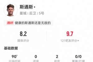 體育資訊1月30日訊 曼城在本輪歐冠逆轉(zhuǎn)布魯日,斯通斯本場數(shù)據(jù)如下: