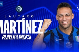 此役勞塔羅打進(jìn)3球,歐冠官方宣布,他當(dāng)選本場(chǎng)比賽最佳球員。