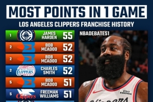 快船隊史單場得分榜前十詳細(xì)排名: