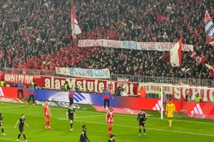 體育資訊11月24日訊 拜仁在本輪德甲焦點戰(zhàn)6-2逆轉(zhuǎn)弗賴堡,拜仁死忠“南看臺”在比賽中打出橫幅,侮辱同城死敵慕尼黑1860的主席格爾諾特·曼格是“婊子養(yǎng)的”。