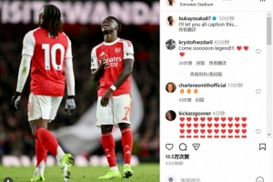在社交媒體上,薩卡曬出了自己和上演帽子戲法的埃澤賽場同框照,他寫道:大家發(fā)揮創(chuàng)意,取個標題吧!