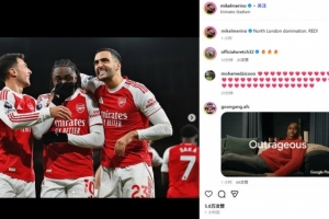 他也在賽后通過社媒曬出自己和隊(duì)友的相擁慶祝照,并配文:“紅色統(tǒng)治北倫敦!”