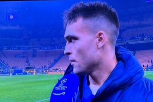 體育資訊1月30日訊 在國(guó)米3-0大勝摩納哥直通歐冠淘汰賽后,戴帽的勞塔羅接受了Prime Video的賽后采訪(fǎng)。