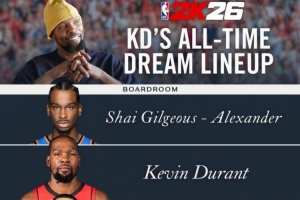 體育資訊11月25日訊 今天,火箭球星凱文·杜蘭特在社媒曬出了自己心目中的2K首發(fā)五人組。