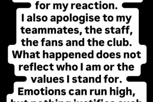 “發(fā)生的事情并不能反映我的為人,也不能反映我所代表的價值觀。情緒激動在所難免,但沒有什么理由可以為這種行為辯護,我保證這種事不會再發(fā)生了?!?/p>