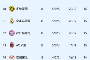 而兩隊(duì)的排名最終靠的是客場(chǎng)勝場(chǎng)數(shù)決定,皇馬4個(gè)客場(chǎng)只有2勝,但是拜仁客場(chǎng)僅1勝。