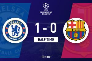 上半場(chǎng)傷停補(bǔ)時(shí)2分鐘,半場(chǎng)結(jié)束,切爾西暫1-0巴塞羅那。
