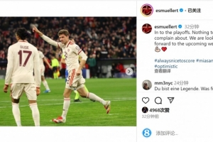 穆勒在社交媒體上曬出比賽照片,配文:“進入附加賽,沒有什么好抱怨的。我們期待接下來幾周的比賽?!?/p>