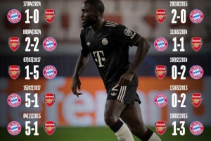 體育資訊11月26日訊 本輪歐冠將迎來拜仁對陣阿森納的焦點大戰(zhàn),拜仁官推也曬出兩隊近10場交鋒戰(zhàn)績。