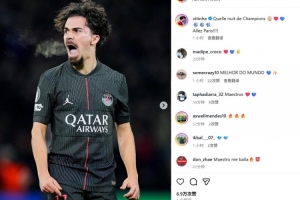 他也在賽后通過社媒曬出自己的比賽照,并配文:“ 多么精彩的歐冠之夜!????????????巴黎加油!”