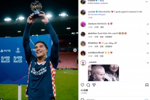 歐冠官方也在賽后將其評選為本場MVP,他也在賽后通過社媒曬出自己高舉MVP獎杯的照片并配文:“真主至大!??在歐冠對利物浦打進2球!”