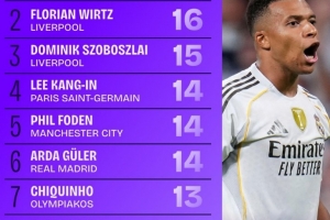 下一篇: 本賽季歐冠射門次數榜:姆巴佩居首,格林伍德次席,哈蘭德第三