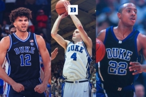這是他賽季前8場比賽中,第二次砍下單場35分。自1985-86賽季NCAA引入投籃時間限制以來,杜克大學(xué)歷史上只有三位球員做到過單賽季多次單場得分35+。另外兩位是雷迪克(兩個賽季做到,05-06賽季更是單賽季7次、其中包括3場40+)、杰伊·威廉姆斯(注:圖中標(biāo)注賽季有誤,應(yīng)為01-02賽季)